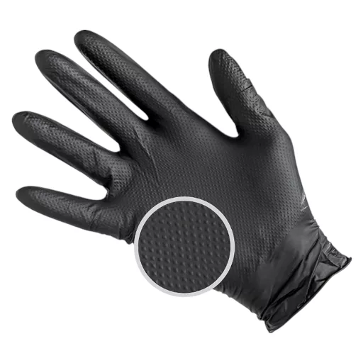 Guante nitrilo diamantado negro, de la talla mediana presentado en estuches de 50 unidades