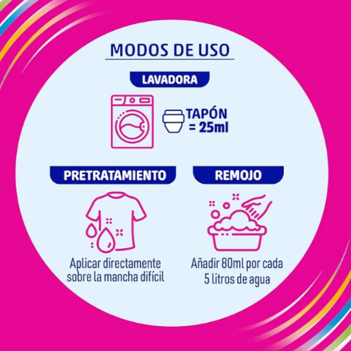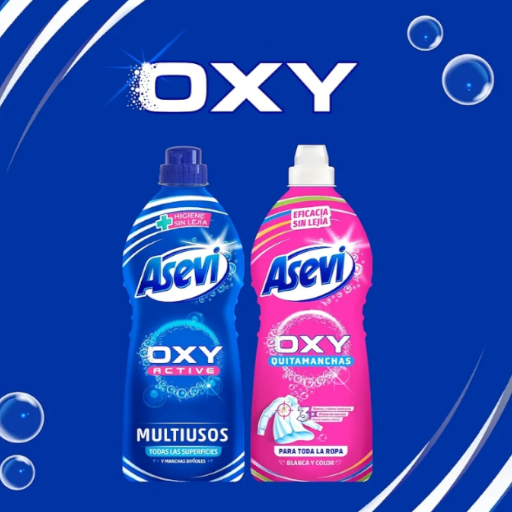 Quitamanchas Asevi oxi gel con Oxígeno Activo elimina eficazmente todo tipo de manchas y malos olores en ropa blanca y de color.