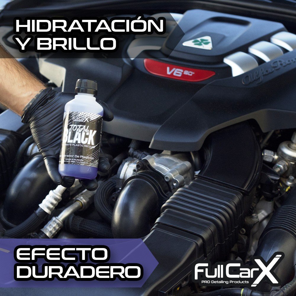 Devuelve el color y brillo original a los plásticos y neumáticos de tu coche con el FullCarX Total Black. Su fórmula avanzada reaviva el tono negro, hidrata y protege frente a la suciedad.