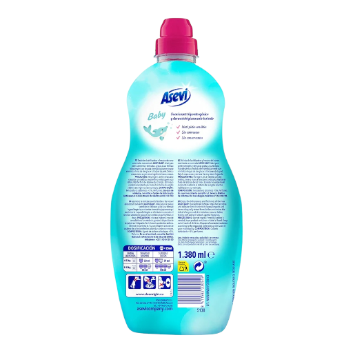 Suavizante hipoalergénico Asevi baby está dermatológicamente testado que proporciona una suavidad cuidadosa con tu piel y tu ropa proporcionando una agradable sensación de delicadeza y frescura.