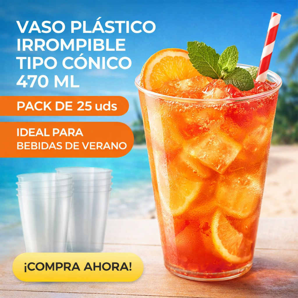 VASO DE PLÁSTICO CÓNICO IRROMPILBLE 470 CL P/25 UDS cantidad